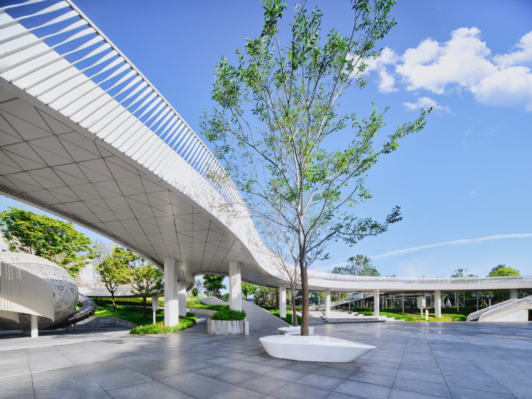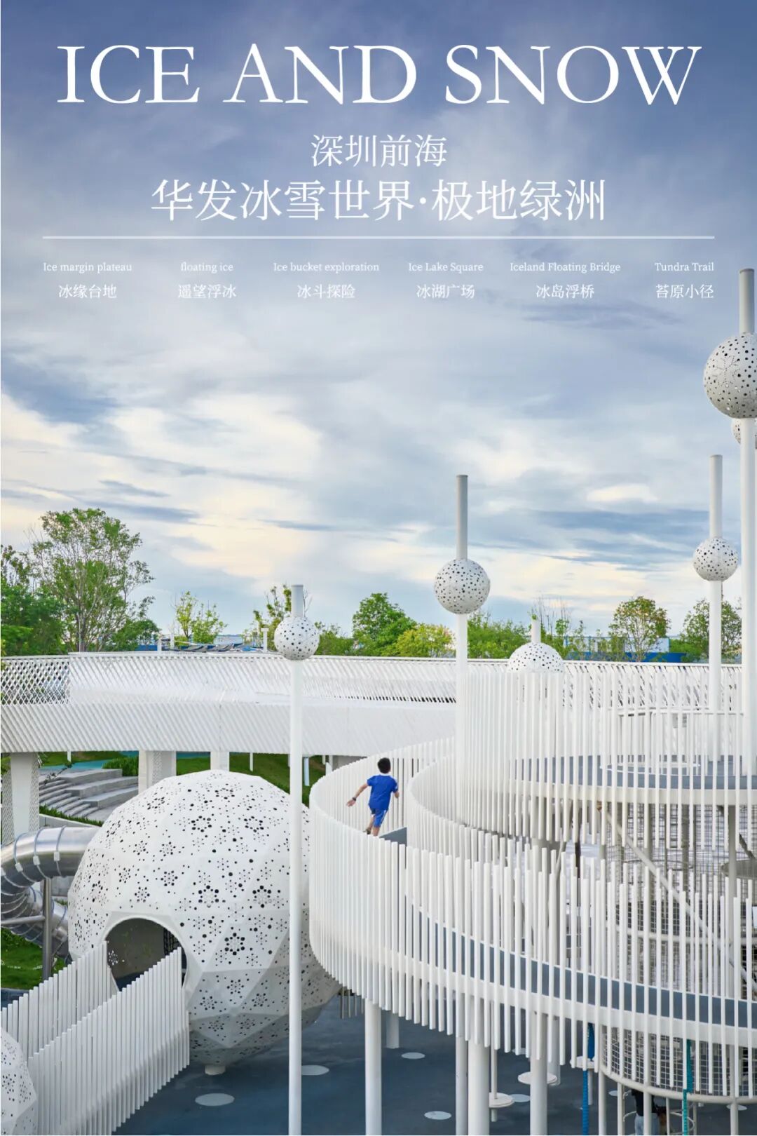 深圳园林股份有限公司作为城市景观及园林建设产业生态链的专业服务运营商,以高标准规划体系、先锋设计理念和创新设计手法,在华发·深圳冰雪文旅城项目中央绿轴公园绿地景观工程设计中,巧妙融合自然之美与人文之梦。